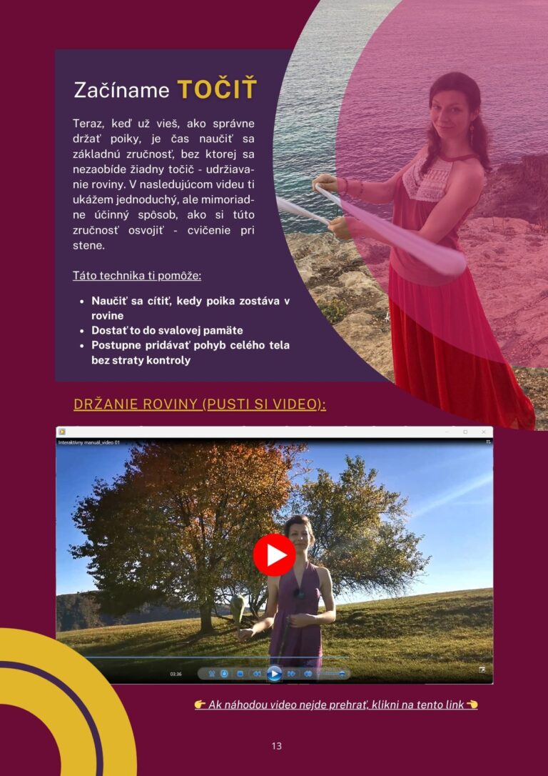 vďaka ktorému sa zorientuješ v rôznych typoch poi, naučíš sa ich správne držať, precvičíš si celé telo, naučíš sa udržiavať roviny a mať poiky pod kontrolou natoľko, že na konci manuálu zvládneš krok po kroku profesionálny nádherne vyzerajúci trik a odomkneš alebo rozšíriš svoj pohybový potenciál